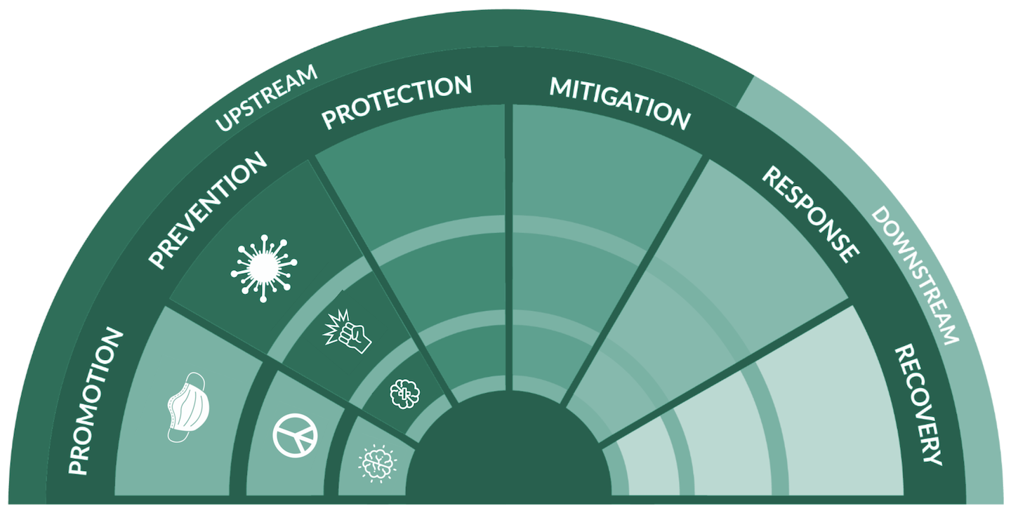 The field of public health targets health upstream before health problems require clinical care. Promoting mental wellbeing and preventing mental distress are more effective approaches than treating mental disorders. Promoting safety and preventing violence is more proactive than the reactive approach ranging from protection and mitigation strategies to punishment-oriented practices. Promoting economic security and preventing food insecurity is essential for health and wellbeing. Our current team research projects focus on applying the science of health promotion and prevention to mental health, community gun violence, food insecurity, and health inequality.